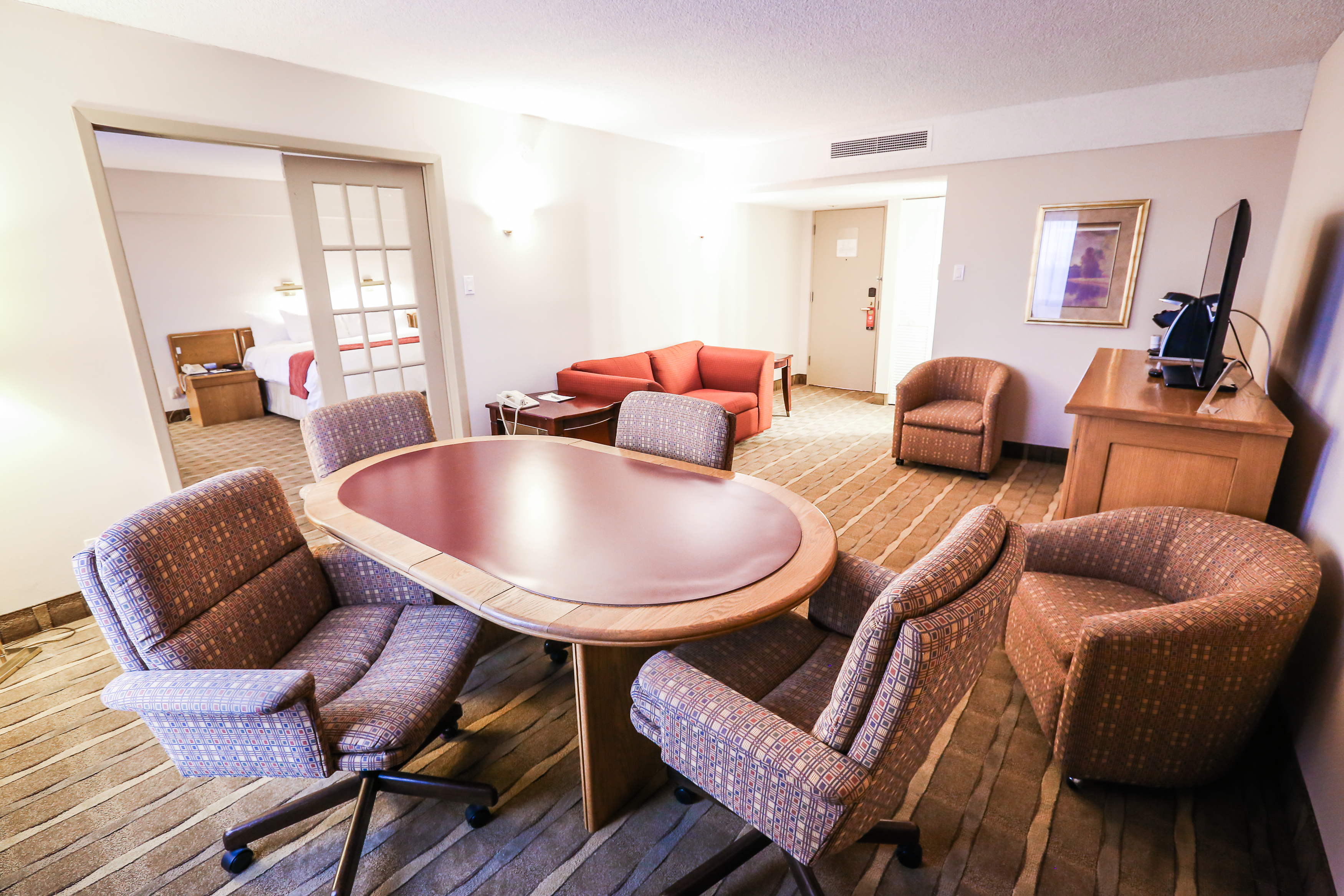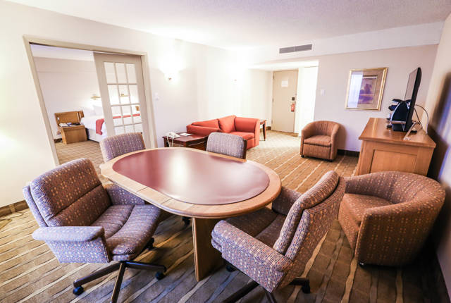After a busy day filled with business meetings and exploring the region, the 128 rooms at Hôtels Gouverneur Trois-Rivières offer you a haven of peace and relaxation. You will be welcomed into a woody atmosphere, laying in high-quality sheets, ensuring you a peaceful and restful night.